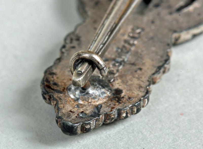 Generally nice condition, some slight losses to the finish to each end of the hull of the U-Boat good finish remaining to the leaves either side, the breast of the eagle and the swastika dull with its wide tapering pin, complete and correct Schwerin Berlin markings. This is the 2nd pattern of the Submarine Combat Clasp.