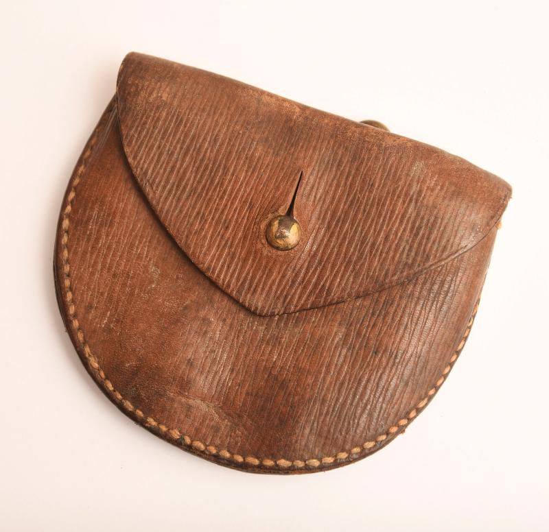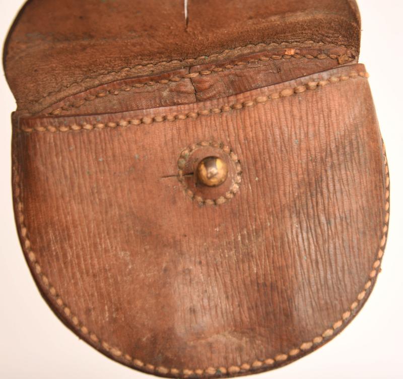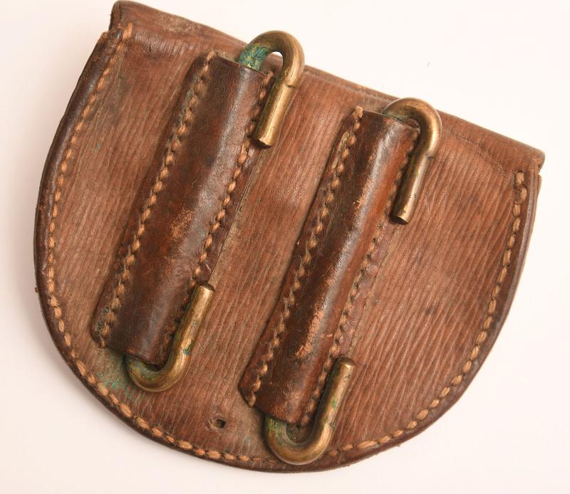 1914 grained leather ammunition pouch for the Webley mark 6 revolver, good white stitching, 1908 belt attachment loops in brass on the reverse side.