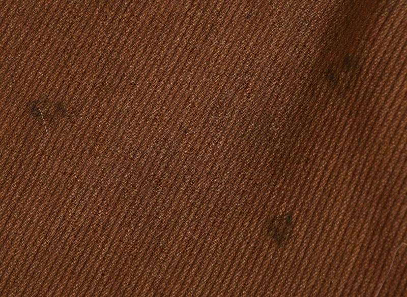 A nice clean set of the corded breeches worn by enlisted men and nco's in the mounted artillery section. Minor staining in the seat area otherwise perfect. All original zinc fly buttons present, laces for tying the base of the breech all intact. No moth.