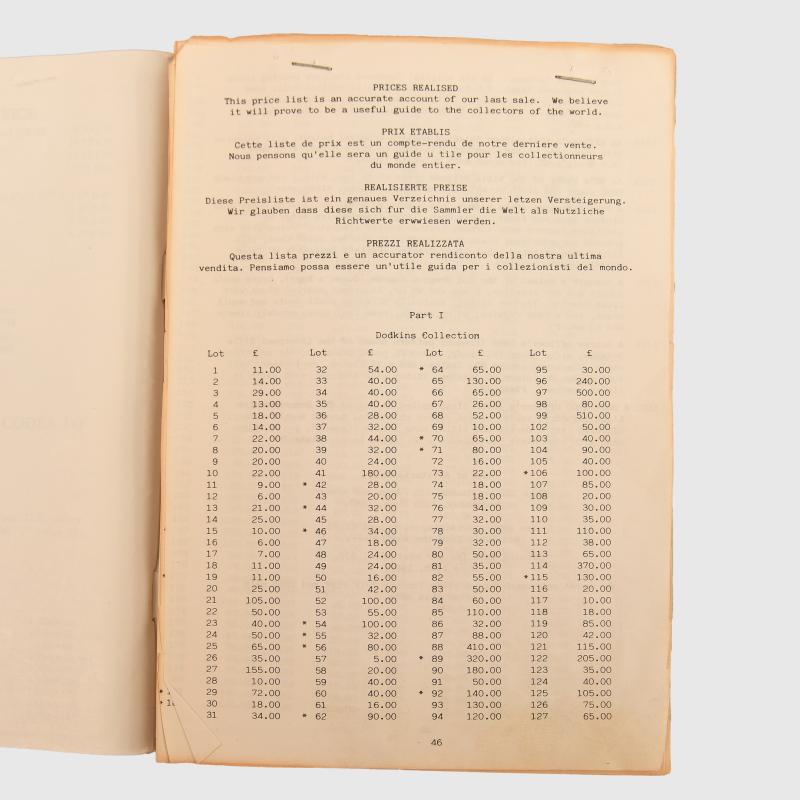 A complete untouched example of the 1 single 2 section catalogue in both April and June 1987 of one of the most well known collections in Great Britain, the collection of Colonel C.M.Dodkins. This example of the catalogue without any annotations to the interior but stapled into the back is the full prices realised sheets enabling the researcher to ascertain prices realised of these well known Imperial German , Third Reich and Austrian items in 1987.