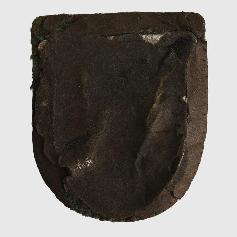 Complete with its army field grey backing material. All of the bronze finish has disappeared from the shield itself. Complete with its paper backing.