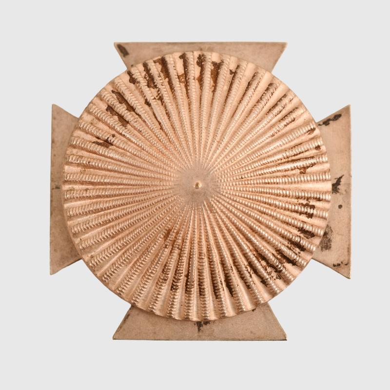 A very good quality early production non maker marked but possibly by Wilhelm Deumer of Ludenscheid. Some slight toning to the frame. All the finish to the central core intact with its large serrated style disc back.