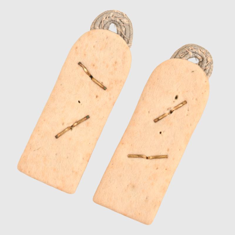A pair of well used stitch-in infantry shoulder boards for an Army Oberst. Some loss of silvering to the twisted cord and storage staining to the white infantry underlay.