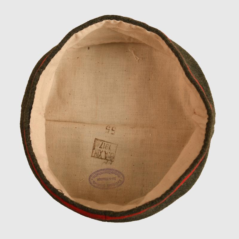 Part of a small quantity we obtained some years ago, which was a mixture of Wurtemberg and Prussian feldmutzes. This is one of the untouched Wurttemberg examples. Standard field grey, no moth damage to the hat, a slight bit of moth tracking on the crown in one place only. Standard red centre band, red piped to the crown with both the national and Wurttemberg State cockades. To the interior it is profusely stamped with the Esslingen maker, stamped size ‘54’, further stamp ‘B.A.X111’ (Army Corps 18) with the date ‘1916’. More extensive, extra images can be seen on our new Premium website, type in regimentalsmilitaria.co.uk in to your web browser.
