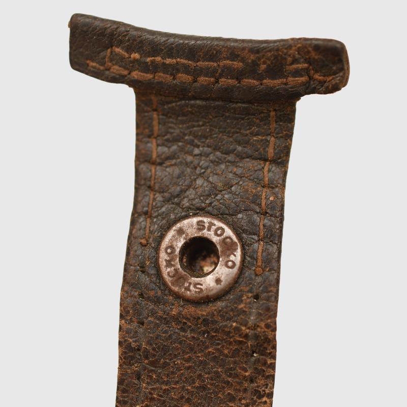 A very good E.T. 71 sized shell painted in a semi tropical finish, possibly used in either North Africa or Southern Italy, at least 70% of the original tropical paint finish remaining, with losses of the paint to the crown area, this is the early three hole spanner bolt model, the inner lining all complete with a single slight tear between one of the stamped holes, the shell size and liner size is faint but visible, also faint traces of the manufacturer, 1/3rd of the stitching that joins the two liner halves together appears to have been restored, with some of the stitching rotted, the inner rubber cushion is solid, the helmet is complete with its original set of chinstrap’s with the two sliding male adjusters present, and the single female stud complete and functioning correctly. More extensive, extra images can be seen on our new Premium website, type in regimentalsmilitaria.co.uk in to your web browser.