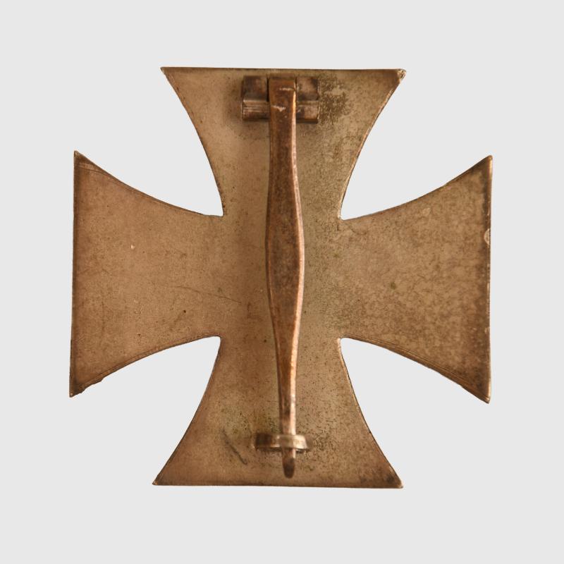 An excellent example of the Iron Cross 1st class, 1939 marked, swastika to the centre. All black finish to the centre good with slight rubbing to the swastika. At least 80% of the finish remaining to the frame with its wide tapering pin, original hook and hinge in its slightly domed presentation case with the silver outline of the Iron Cross to the exterior. The flock base has darkened, the underneath of the Iron Cross is a lighter shade with an impression to the upper inner silk lid of the Iron Cross itself. Closing catch working correctly.