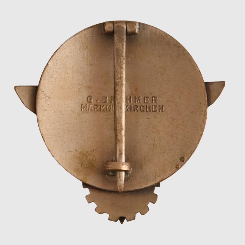 A mint example of the 1939 silver Gauseiger badge, undamaged enamels, all finish remaining. Maker marked in raised relief on the reverse side ‘G.Brehmer’ with original pin, hook and hinge.