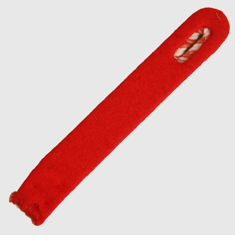 Rank of mann. Four rows of intertwined pinkish red and white twisted cord over a pinkish red base colour, which we believe is the area of Ostmarck and Sudmarck.