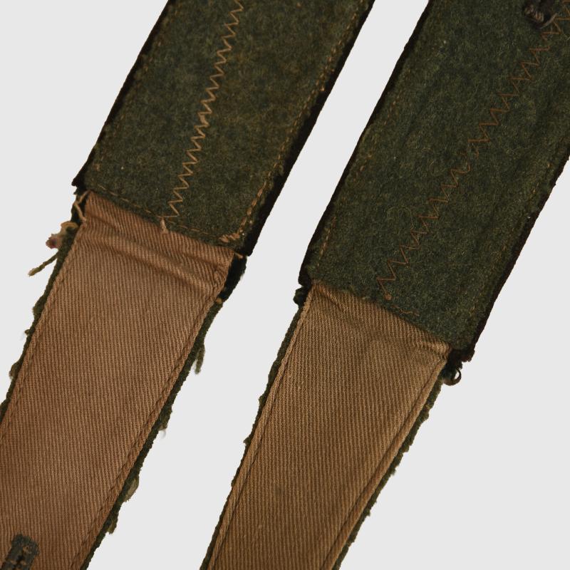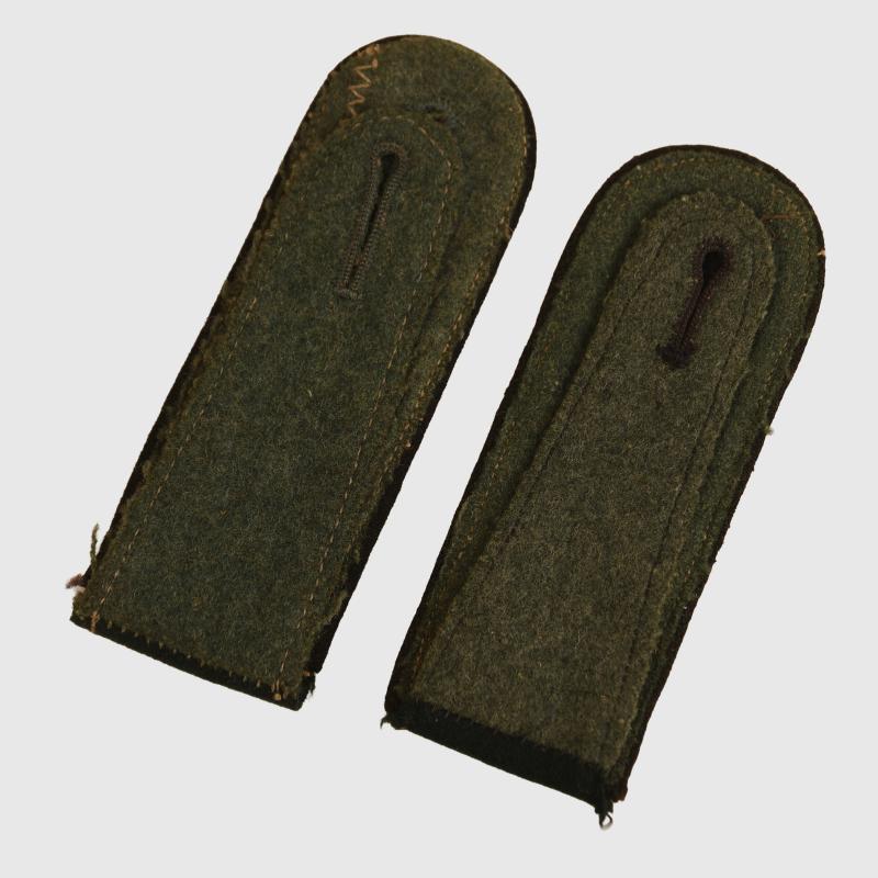 A matched pair of shoulder boards for the Army M.36 tunic. Black wool piped for Pioneer, slight shading in parts to the dark green centre. Both slip-on tabs present.