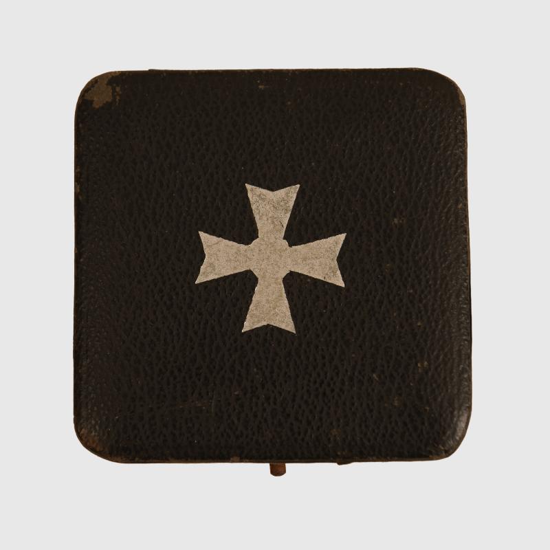 A good non maker marked example. Some remains of frosting to the frame and the central swastika. In its fitted case with a good bright outline of the award to the exterior of the lid.