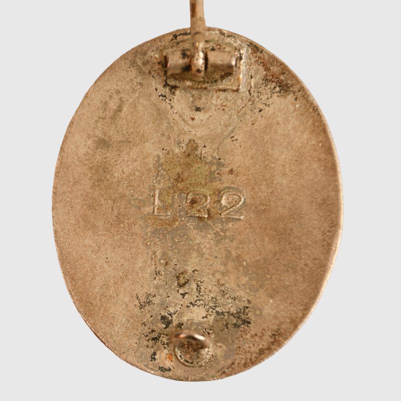 A good quality nicely detailed example retaining much original factory finish. Round pin, maker marked L22 in large, raised numbers on the reverse side.