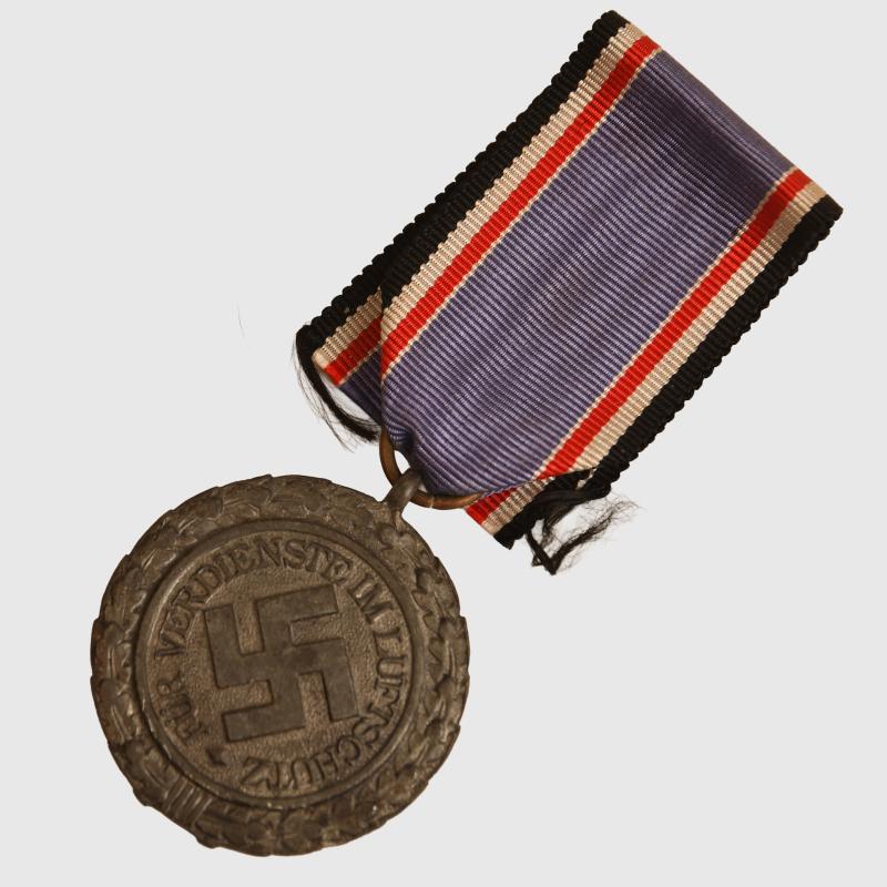 A mint example of the Luftschutz medal 2nd class, all grey finish still remaining with its original full length ribbon, situated in its original box of issue, the lid having the title ‘Luftschutz Ehrenzeichen 2.Stufe’. The box is in perfect condition.