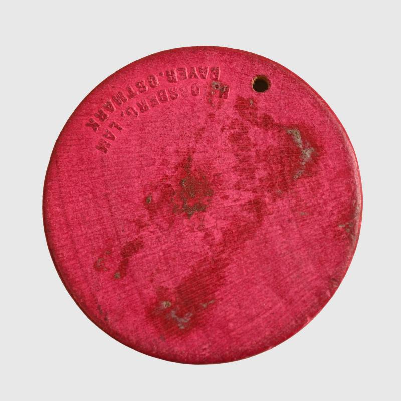 Stamped into the wood ‘Winter Help Work 1934/35’ with central eagle and swastika with a cogwheel surrounding the swastika with a small suspension hole to the top of the disc.