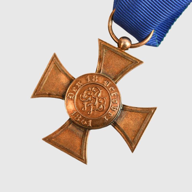 A WWI production piece without enamels, lovely condition overall with watered silk ribbon. Good gilding to the award itself.