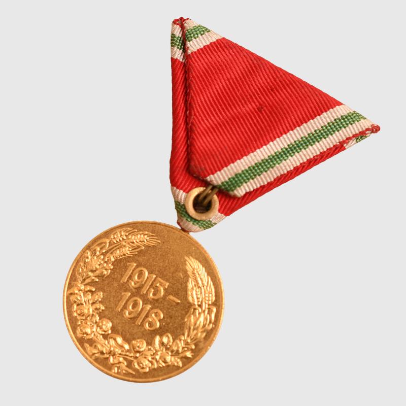 A nice condition 1915/18 Bulgarian Service medal with its red, white and green ribbon in Austrian wrap style. Awarded to Bulgarian citizens, Germans and Austrians.