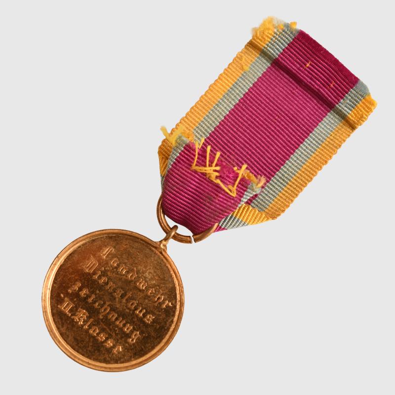 A very fine condition Landwehr Long Service Medal 2nd class for the State of Mecklenburg/Schwerin. All gilding remaining with its yellow, turquoise and purple ribbon. Scarce medal for this small State of Mecklenburg.