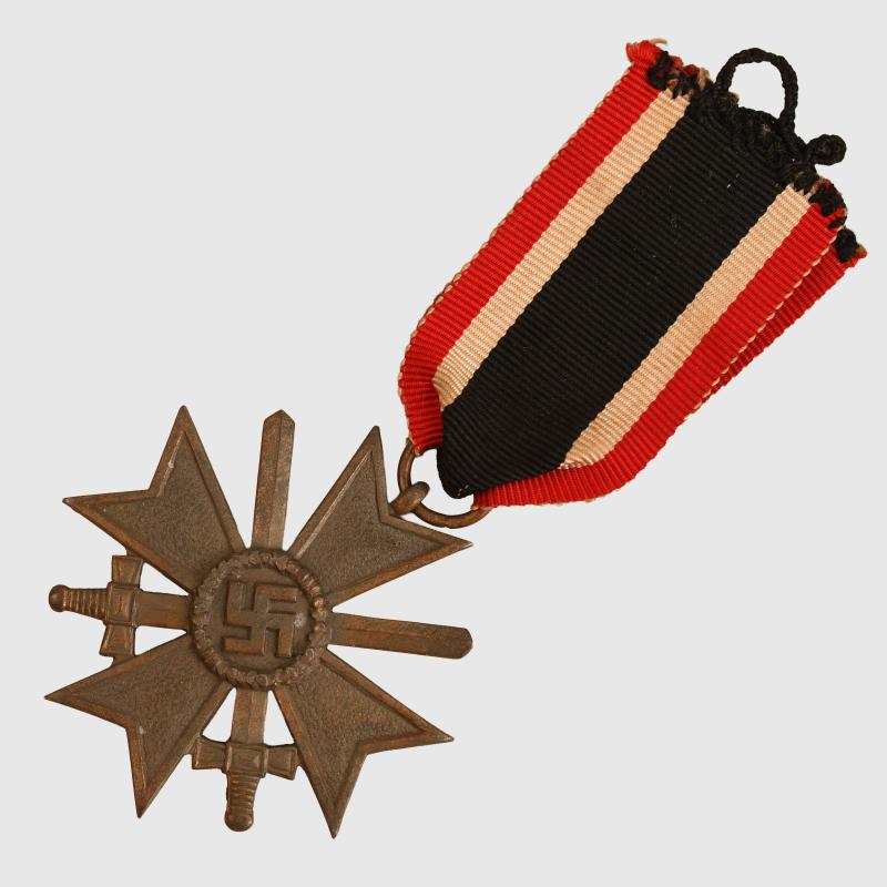 Award retains at least 70% of its original bronze finish, with its section of red, white and black ribbon.