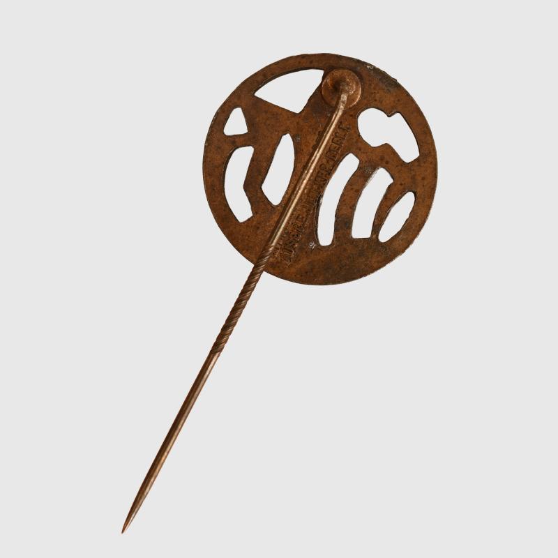 Lapel pin fixing. All bronze finish remaining but some loss of finish to the central stem below the eagle’s neck. A Berlin maker’s mark in raised relief on the reverse side. 20mm circumference.