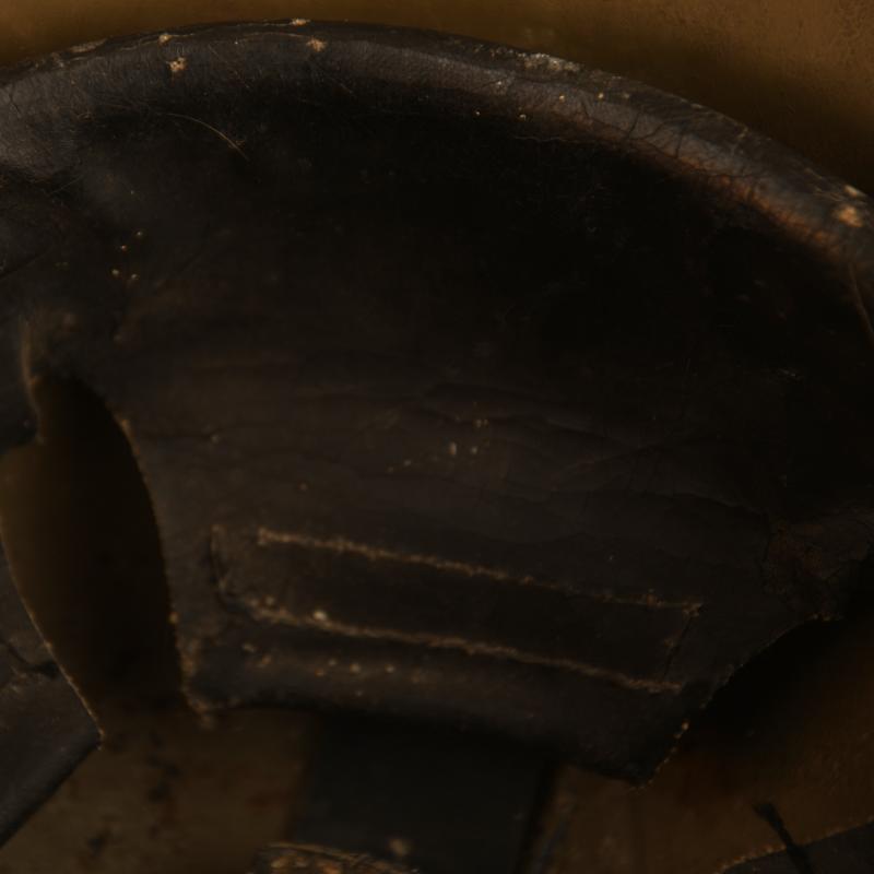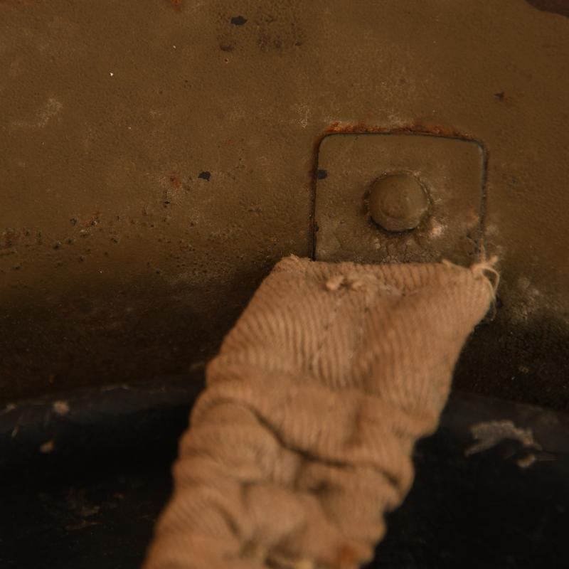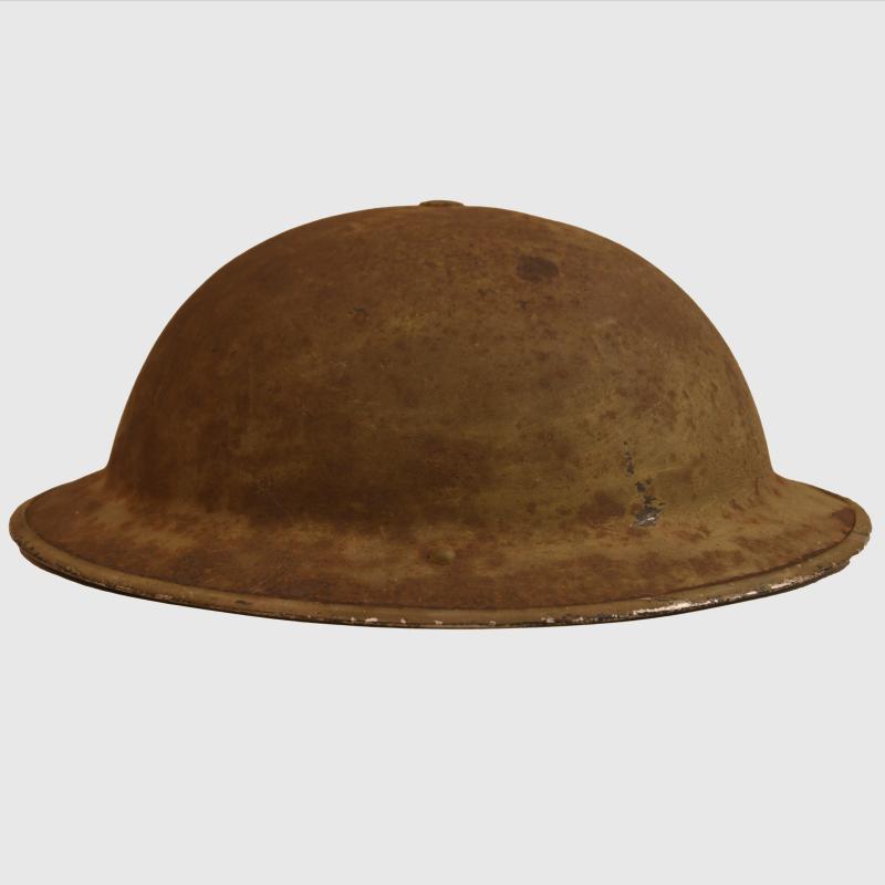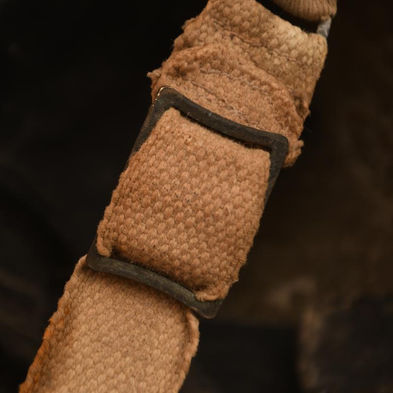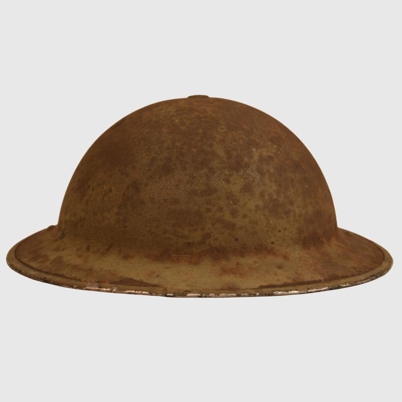 A 1939 dated size 7, maker marked BMB, the exterior skull finished in a form of Pea Green camouflage, complete with its undamaged interior liner and wire sprung loaded chinstrap.