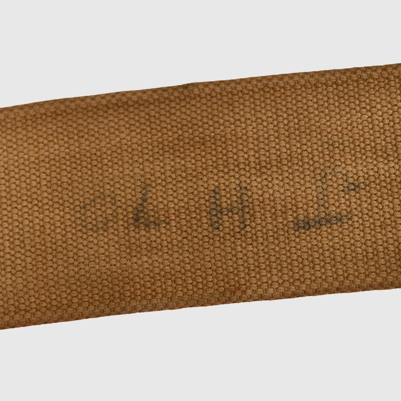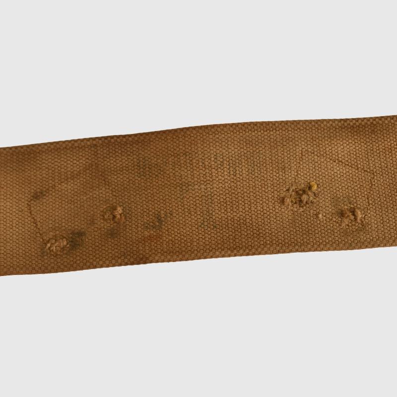 The Mills equipment waist belt with the brace attachment buckles cut off. Faint traces of markings.