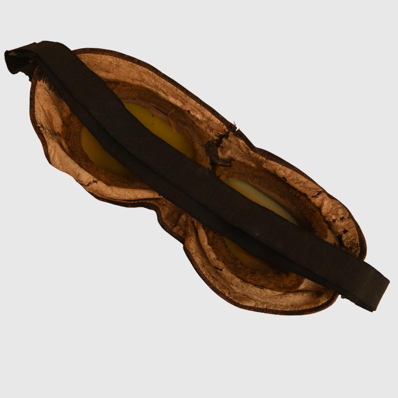 Tinted lenses, large leather surround with soft interior with its elasticated neck strap.
