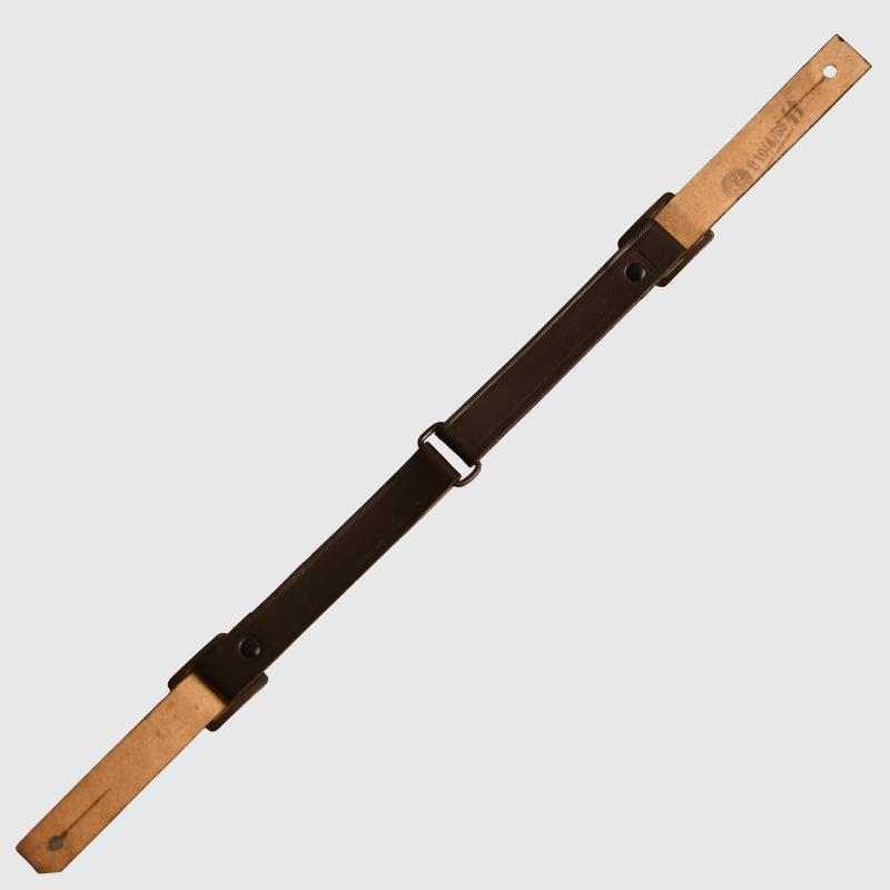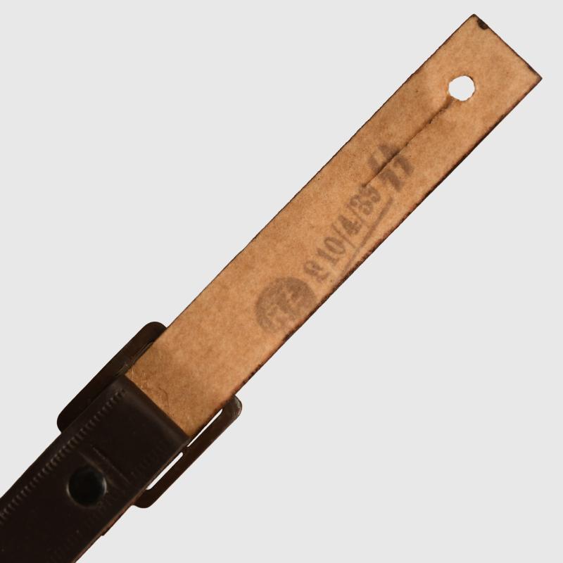 A mint unissued condition all brown leather strap for the SA kepi measures 29 cm hole to hole. Unusually marked RZ M SS on the reverse side.