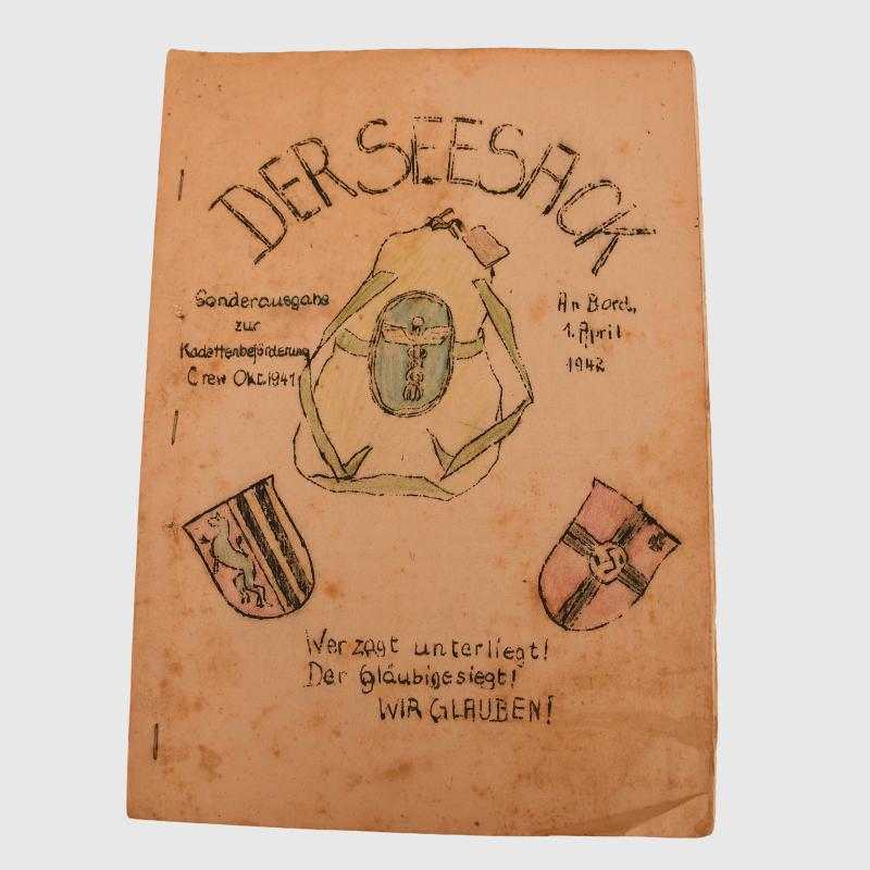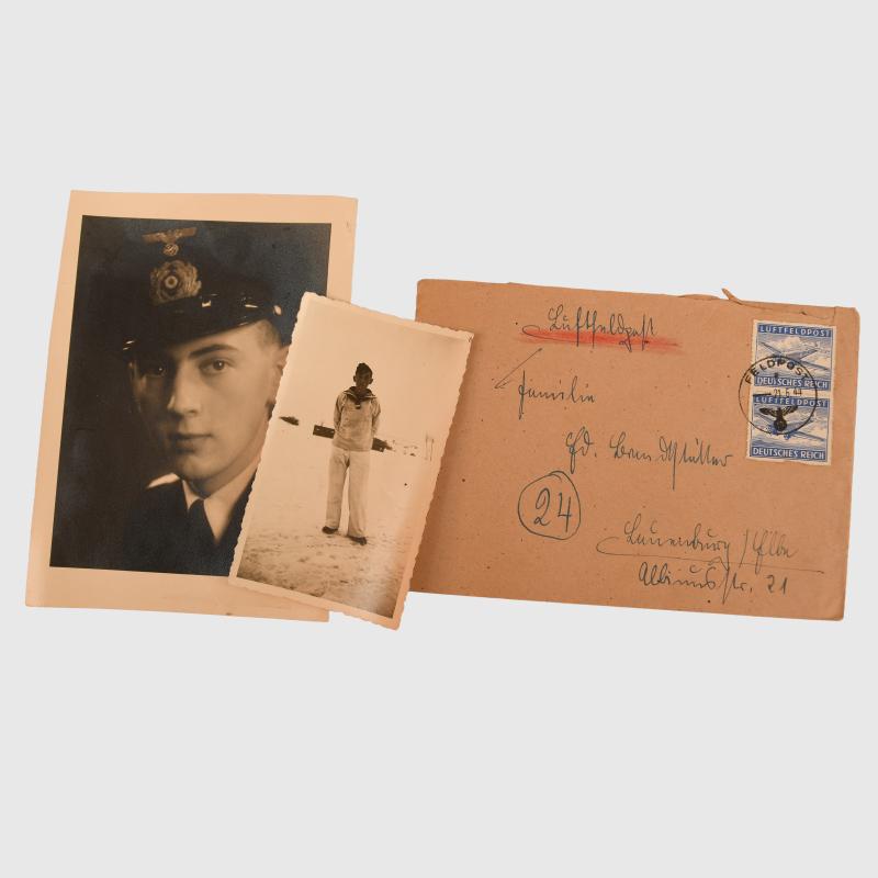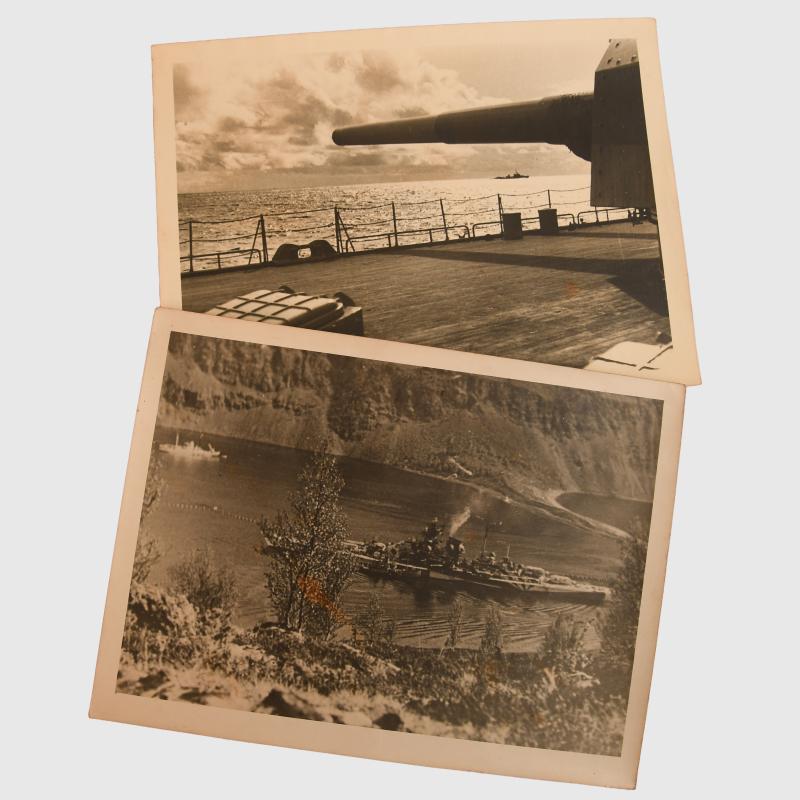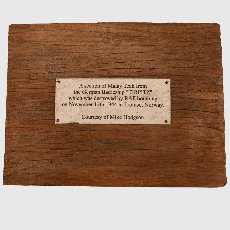 10 letters from Midshipman Berthold Brandstatter, field post number N30162 Battleship Tirpitz. All letters to his parents, which have been expertly translated and have a wonderful insight into the life of a sailor on one of the major German ships of WWII. Accompanied by many photographs of both the Tirpitz itself and his colleagues. A printed onboard programme of events on possibly a training ship in October 1941. Approximately 50 photographs. Also accompanied by a section of the wooden Tirpitz decking that was recovered from the Tirpitz by a David Hodgson, who acquired a large salvage section along with their flag and possibly some other parts of the ship from Jens Kristiansen, a retired policeman from Alta in the 1990’s, some of the deck still on display at Thorpe Camp. Thorpe Camp Preservation Group formed in 1993 to preserve the huts that remained of the former RAF Woodhall Spa, Woodhall Spa was the base in which RAF 617 Squadron flew to deliver the tallboy bombs, which sank the battleship Tirpitz.