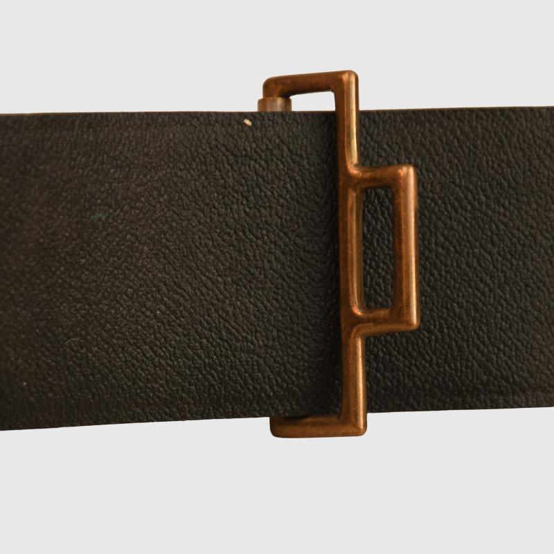 An excellent condition huge size 120 cm Bahnschutz officers all gilded circular buckle with the winged wheel insignia to the centre. Excellent gilt remaining, deeply toned to the interior and non maker marked, complete with its matching keeper. All fitted to a virtually mint condition pebbled leather belt. To the interior the belt is virtually white with a size of ‘120’ stamped. The belt is complete with both of its exact matching original pebbled leather sliders.
