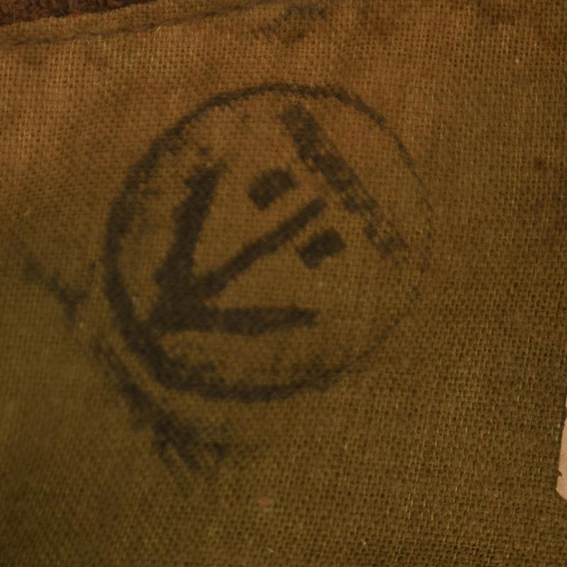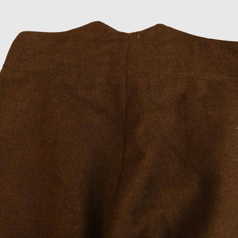 An extremely rare pair of other ranks issued breeches, these are in typical Canadian coarse other ranks wool and have no reinforcing to the inner legs and would have be worn with puttees. The Canadian military provided a great deal of personnel in terms of flying and much training was undertaken in Canada. This particular pair of breeches have a good paper label still intact, printed 'Royal Flying Corps' and Toronto 1918. There are other acceptance stamps throughout. The lining is of coarse olive linen. The buttons are Canadian all metal types including the fly button, which is a mechanically attached riveted type button. Unfortunately these have suffered greatly from moth and this has been well restored to the legs and these still would make an intriguing display item. Any item of RFC clothing has always been considered rare, this is the first pair of Canadian breeches we have ever encountered.