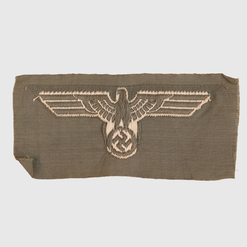 The very first pattern of eagle for the M.36 combat tunic being the very light grey on medium grey background. Bevo woven. Cut from roll.