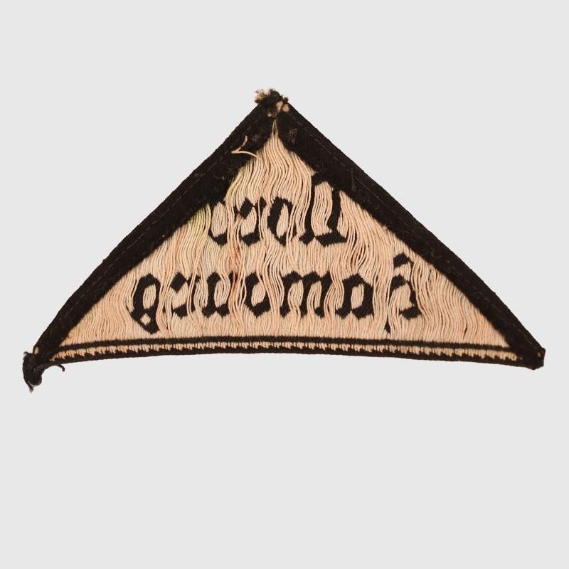 White on black Bevo weave for Nord Hamburg. It appears to have been removed from a blouse.