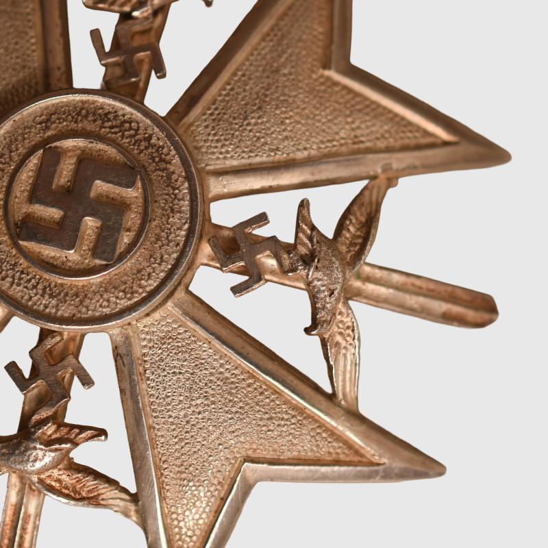 GERMAN WWII SPANISH CROSS IN SILVER WITH SWORDS STAMPED 925 SILVER.
