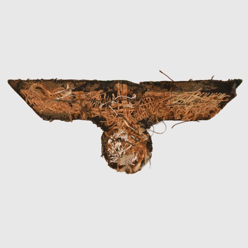 A very nicely hand embroidered all silver army officers breast eagle on its green backing cloth, the cloth slightly shredded to the area around the swastika.
