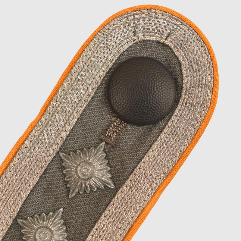 A very rare pair of Luftwaffe NCO shoulder boards, constructed in the blue heavy canvas material to fit the Luftwaffe blue tropical tunic, silk yellow piped, rank tresse and pips for the rank of Oberfeldwebel