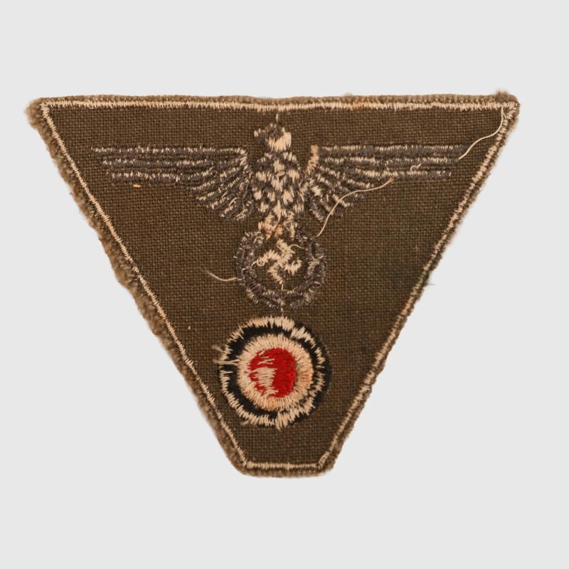 Subdued eagle and swastika woven into canvas type backing with multi coloured national cockade.