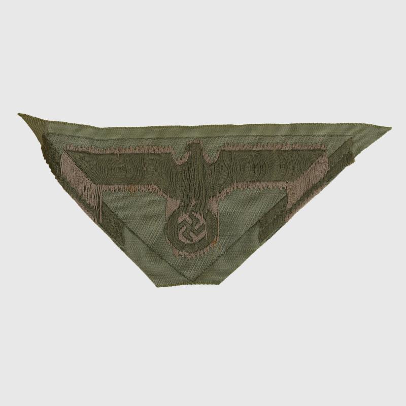 Bevo woven grey on green triangular form breast eagle for the later war tunic.