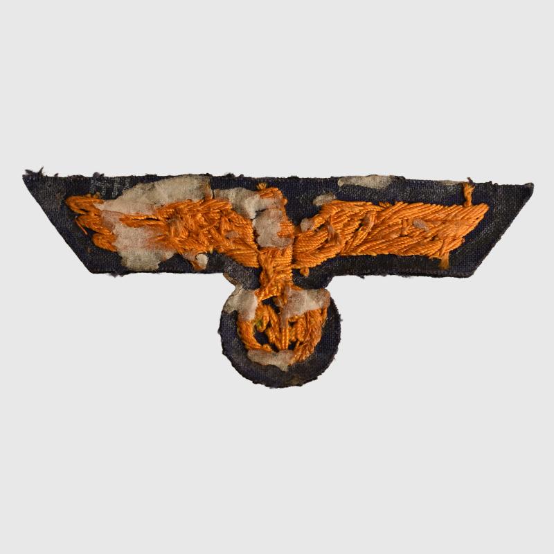 A very nice cellion weave thickly woven gold eagle on blue background. Glue residue on the reverse side where previously attached to a display board.