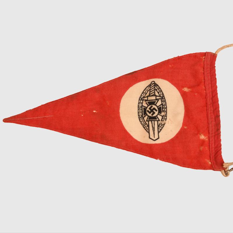 A slight moth damaged car pennant all printed, measuring 32 x 18cm. The NSKOV emblem printed on a white field to the centre. Some moth as can be seen from our web images. Complete with its rope and clip suspension.