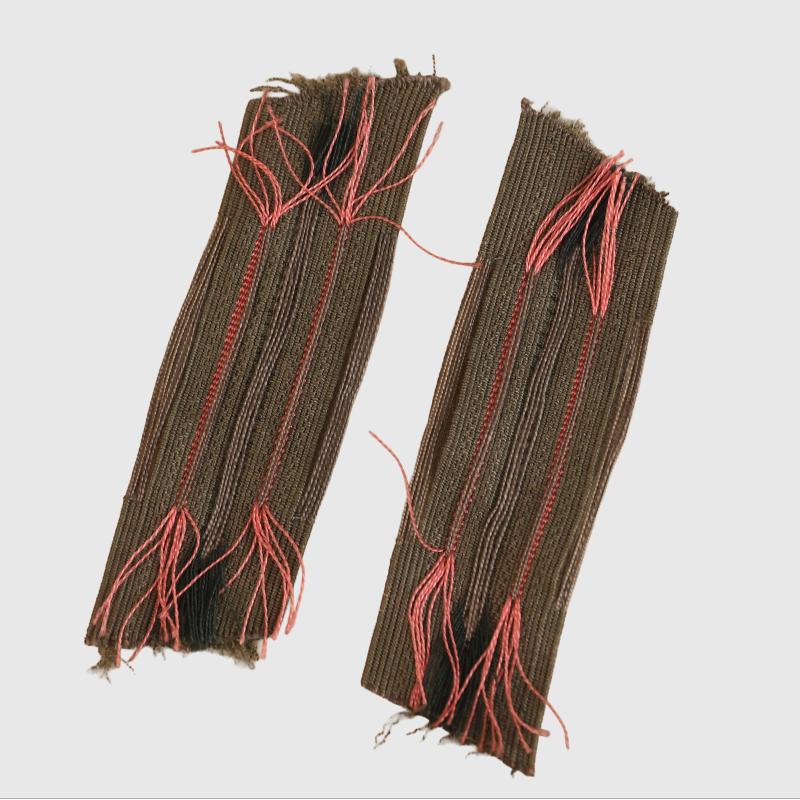 A matched unused pair of pink Bevo woven collar patches for the M.36 tunic.
