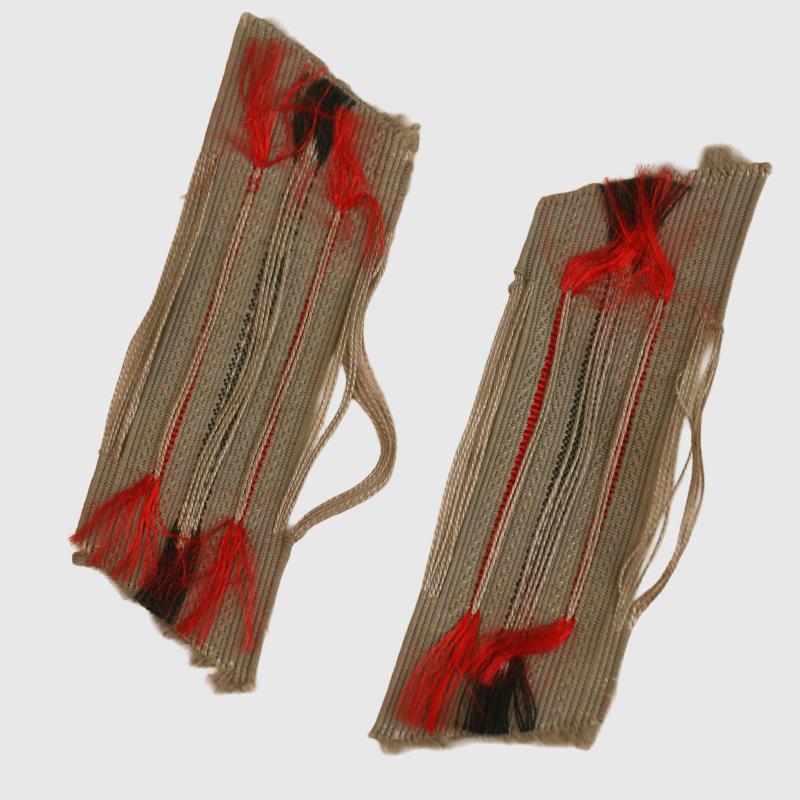 A pair of Bevo woven unused condition red piped collar patches for the M.36 tunic.