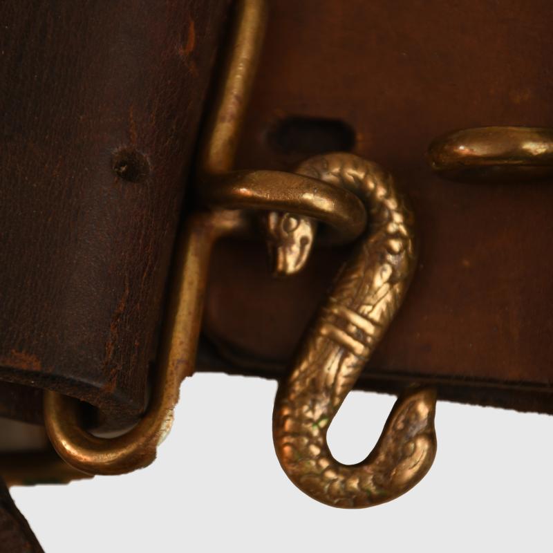 A very nice condition all complete 42 inch 1914 waist belt. Maker marked 'Frank Bryan, London' with date '1919'. One of the straps has been contemporarily re-attached to its buckle fixing and matches exactly.