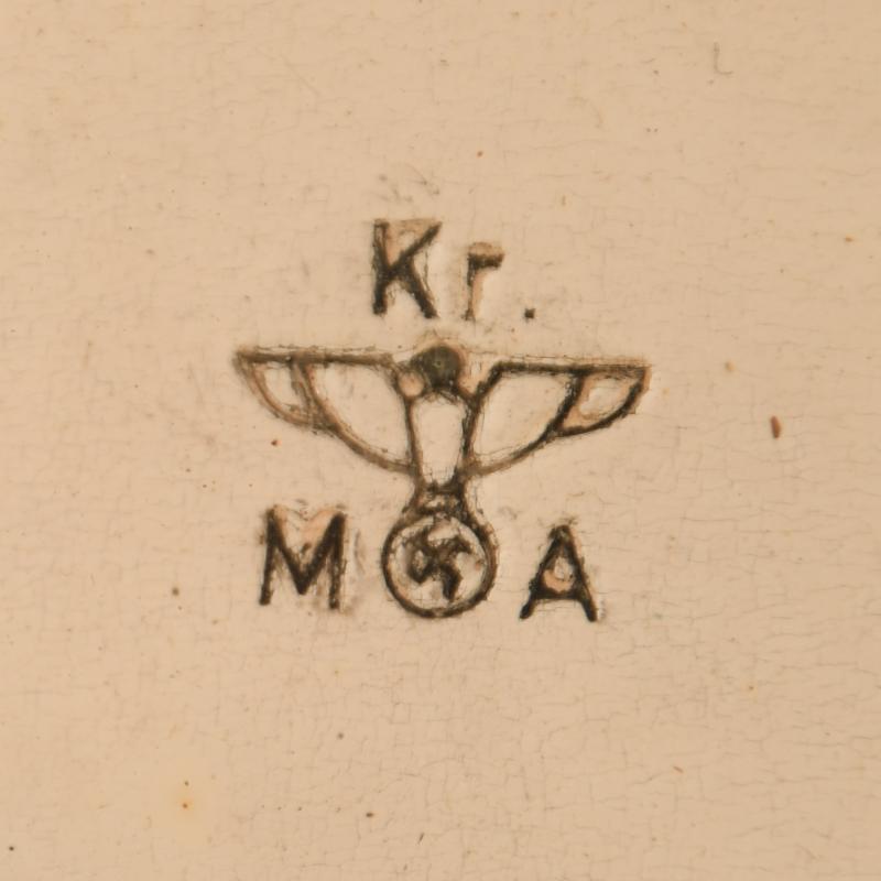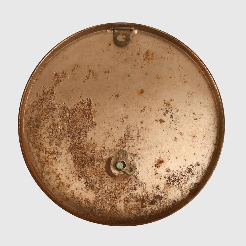 A 21cm circumference timing device, 7.5cm deep. Excellent condition white dial with all of its timing figures from 5 to 60 seconds with a 60 second inner dial, with the embossed KR over Third Reich eagle with the letters ‘MA’ either side of the swastika indicating that this is a Marine Artillery timing device either for torpedo timing or large calibre cannon firing. Fully functional. Good action. Complete with its hanging clip, all of its correct start buttons.