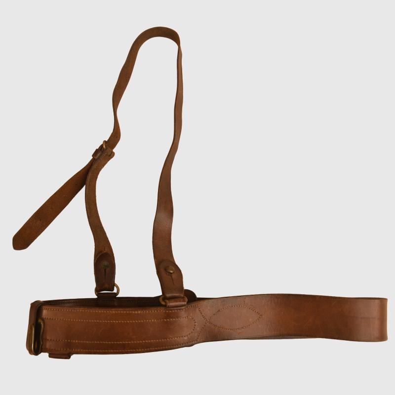 A nicely dated '1914' and maker marked mid brown officers waist belt and cross strap, it is very difficult to find early war dated items.