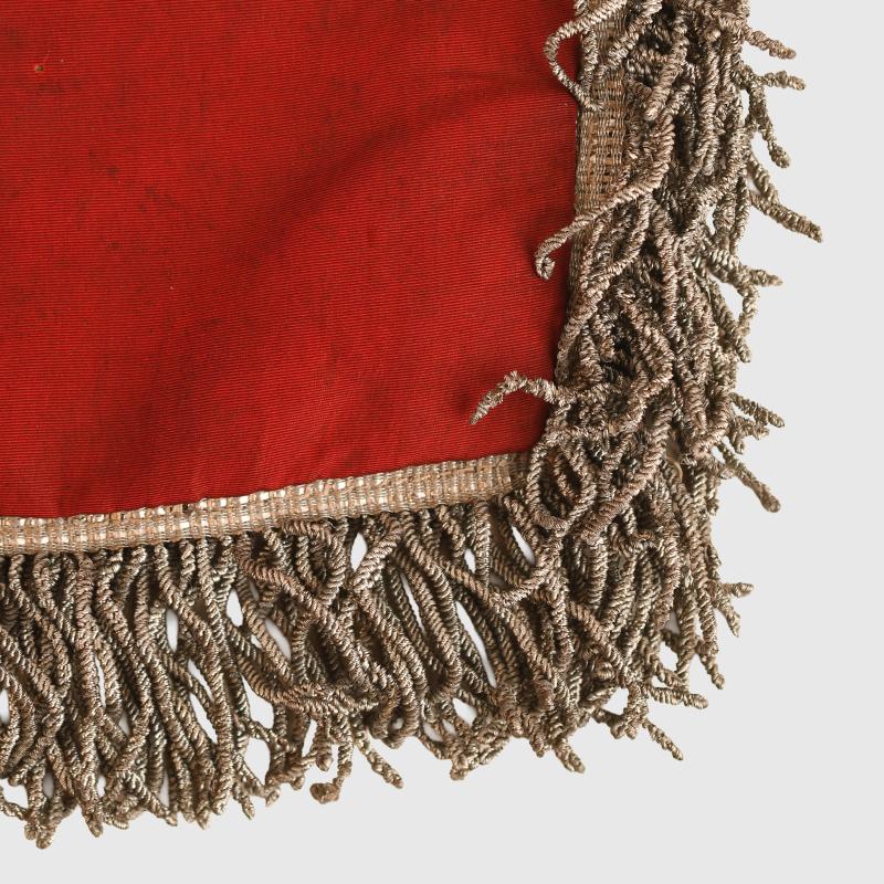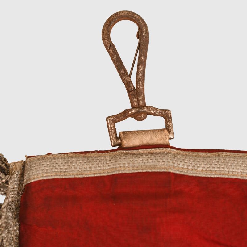 52 cm x 36 cm very nicely constructed trumpet banner, red silk base with to the face side a huge Luftwaffe Eagle and swastika hand embroidered in the typical German chain stitched embroidery pattern of the period, on the reverse side Flak Regiment 26, I.Abteilung, some discolouration to the red field, no moth damage or undo imperfections, with its complete fringe on three sides, the upper part of the banner having its original metallic clips which are sprung loaded for attaching to the Luftwaffe trumpet, Flak Regiment 26 was formed on 1 October 1936 in Dessau-Kochstedt. There would be between 6 to 8 Fanfare trumpeters in each Luftwaffe bands. More extensive, extra images can be seen on our new Premium website, type in regimentalsmilitaria.co.uk in to your web browser.