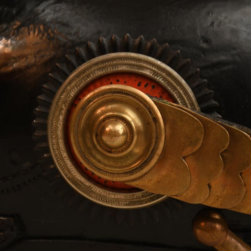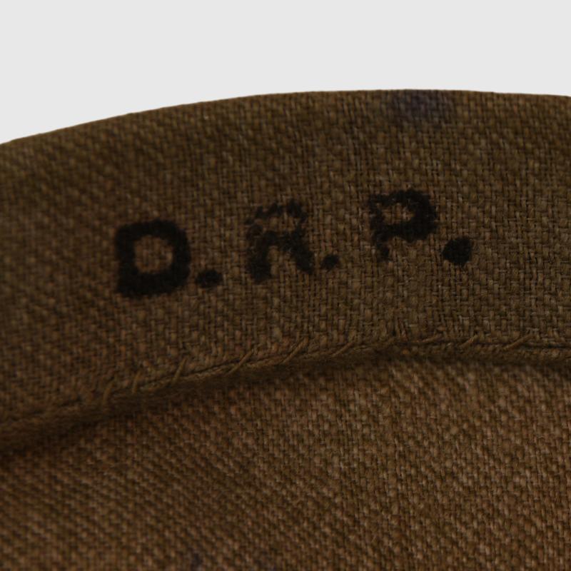 A good leather skull with minor creasing to the skull, both peaks firmly attached to the main body of the helmet. Good gilt overall. Cut out crown with reserve officers cross to the breast of the eagle of the front plate. Infantry style flat chin scales. Officer quality national and Prussian State cockades. To the interior an officers quality leather liner with upper scalloped edges showing considerable wear use, with its inner silk lining. A pencilled size of ’56 ½ ‘. Faint traces of an original owner’s name applied to the leather sweatband. Complete with its officers field cover, which is marked ‘D.R.P.’ on the interior of the rear peak cover. More extensive, extra images can be seen on our new Premium website, type in regimentalsmilitaria.co.uk in to your web browser.