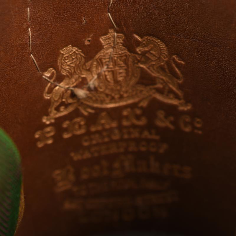 A nice condition pair of maker marked Hussar boots from the Victorian period, complete with gilded spurs, gilt trim to the upper part of each boot with its oval bullion boss. To the interior both boots beautifully gilt stamped with the Royal Coat of Arms, Victorian Crown ‘Peal & Co, Original Waterproof Boot Makers for the Royal Family 487 Oxford Street, London W’. The perfect item to finish off a complete Victorian or Edwardian Hussar officers uniform. The lace around the top of the boots and the boss are in gilt, although they have faded to a silvery colour indicating they are for a Hussar Line Regiment. Please do not ask for sizes, these boots are not for wearing only for mannequin display.