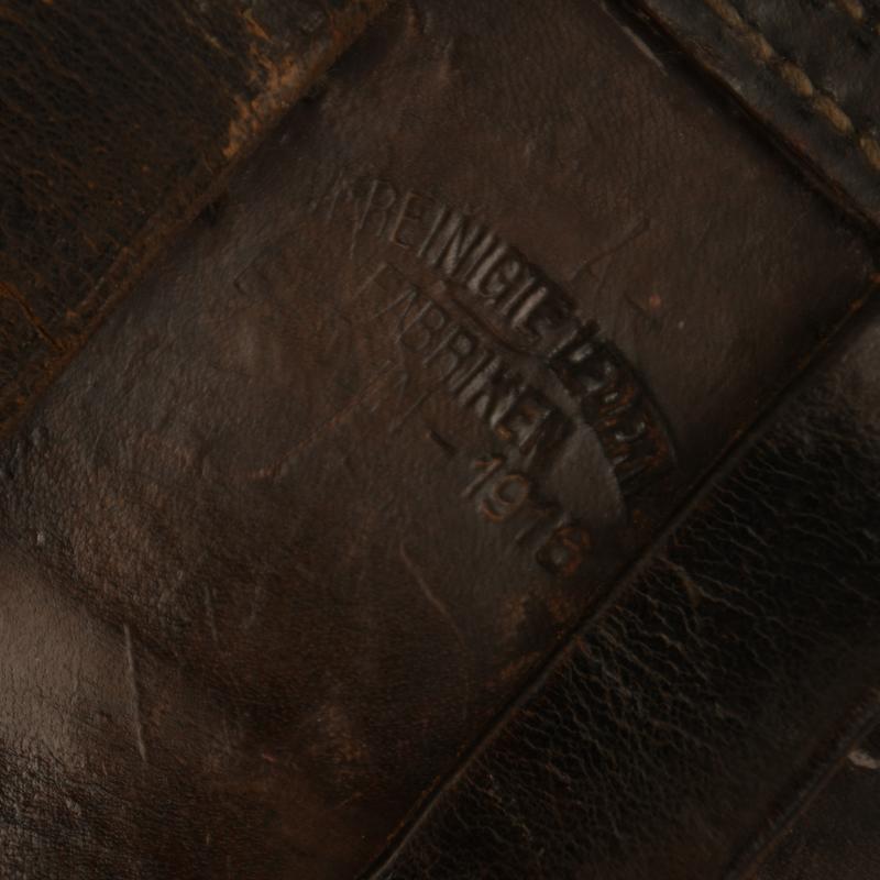 A very nice condition service worn Luger holster. Maker marked on the reverse side and dated ‘1916’. Complete with its stripping tool pouch, correct closure strap and buckle, both belt loops in place with its spare magazine pouch. Good firm body to the holster.