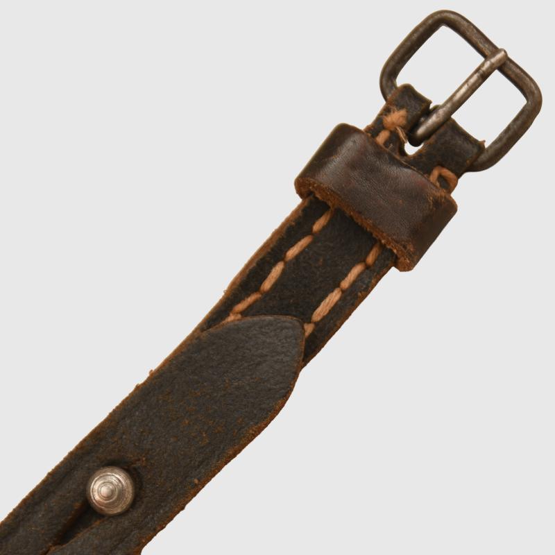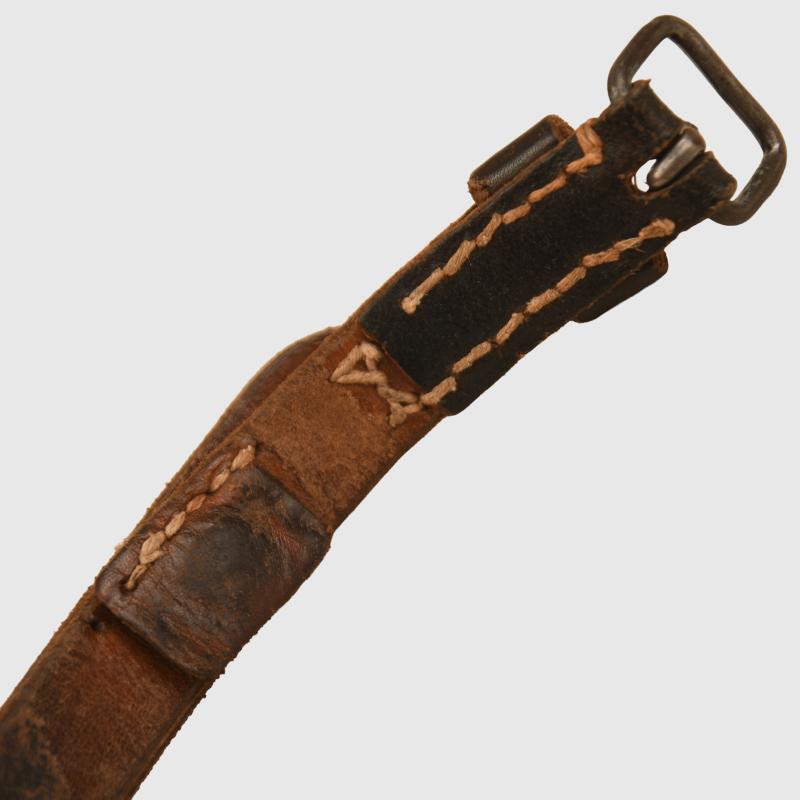 Nice condition with ink stamp markings to the strap with a clear date ‘1941’. All good white stitching visible. Buckle strong. The small section of leather that protects one of the rivets is slightly loose on the strap.