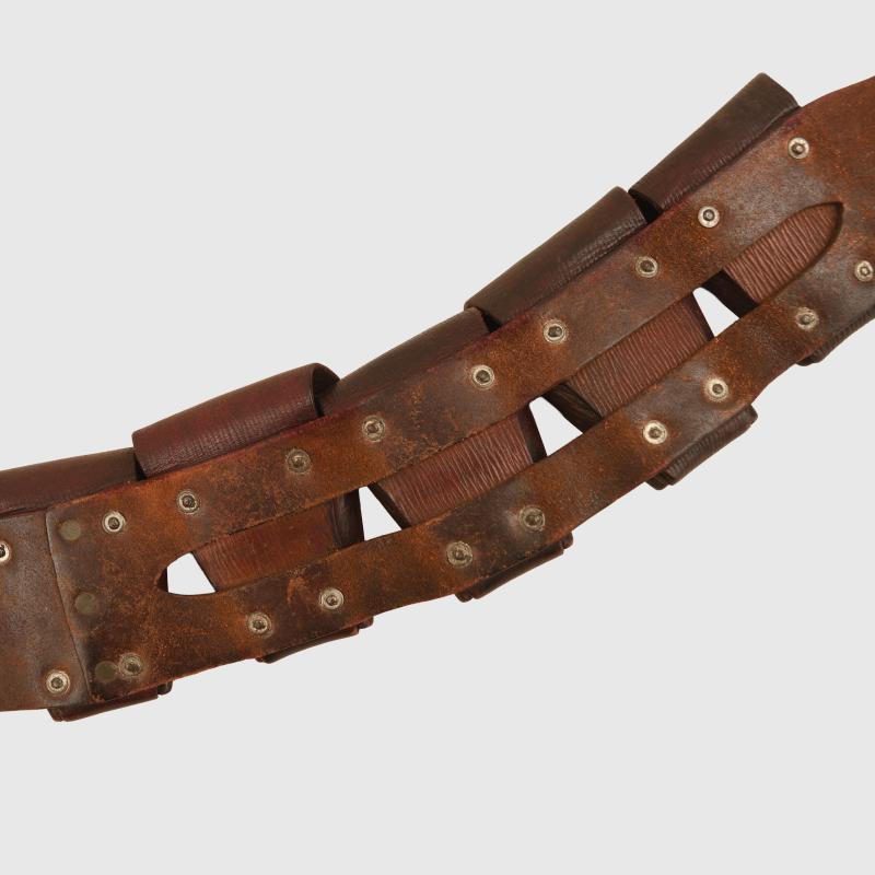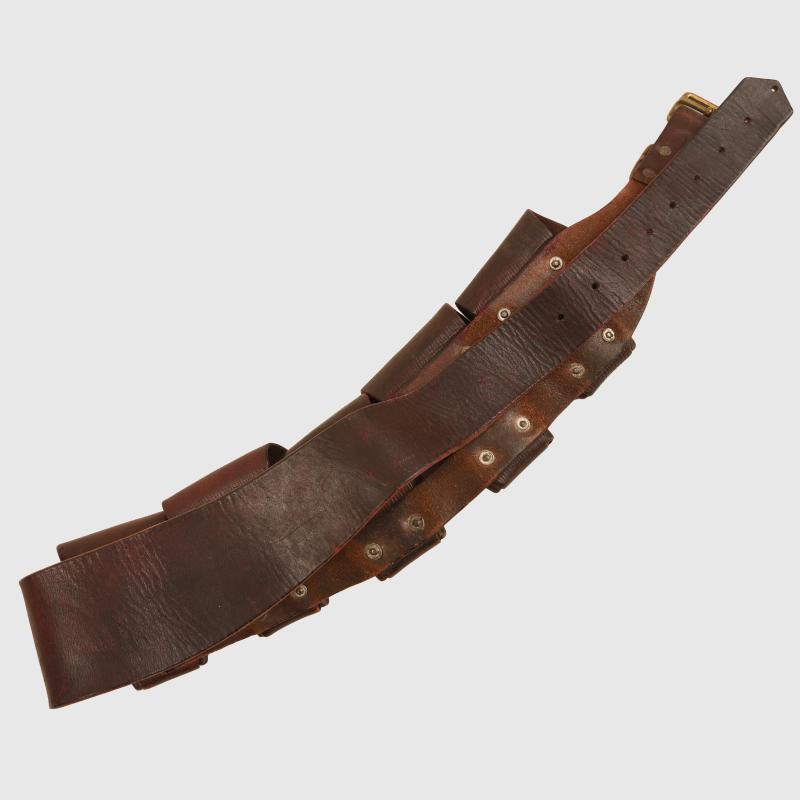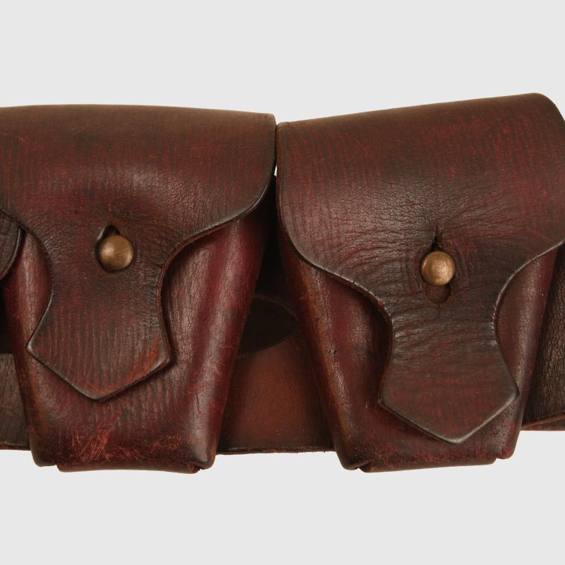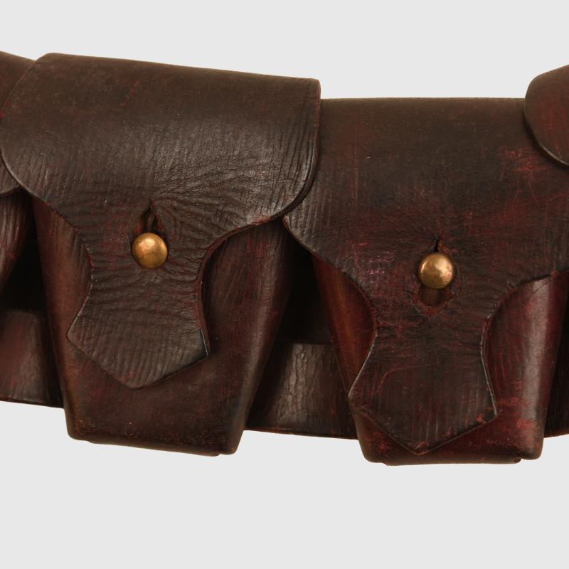A very nice condition five compartment ammunition bandolier for mounted troops. Although undated this is the 1903 pattern constructed in the classic grained brown leather of World War I.