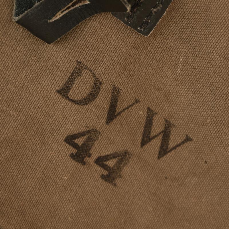 Faded colour, all leather, aluminium and metal fittings present. Some slight rust markings, heavily stamped ‘DVW 44’ to the interior.